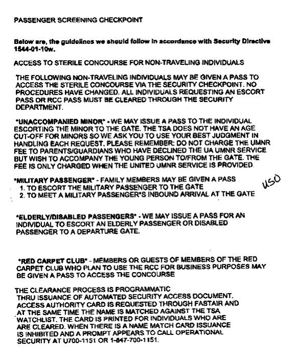Below instruction will show you how to get access to the airport concourses to meet your Sailor when the arrive or depart. You usually have to go to the ticket counter to get the passes. Remember, most counter agents have know idea about this. If they say they can give you gate passes, then show them this message, and ask for their supervisor. Again, don't think you have the right to go to the gate, it's just a priviledge. They can always tell you no due to real world events. (hey it's security, if they don't want you on the concourse they are just looking out for everyones safety).