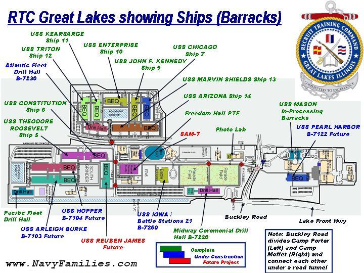 Just thought I'd post this Diagram of the RTC Great Lakes showing the various Ships (Barracks) & Layout.