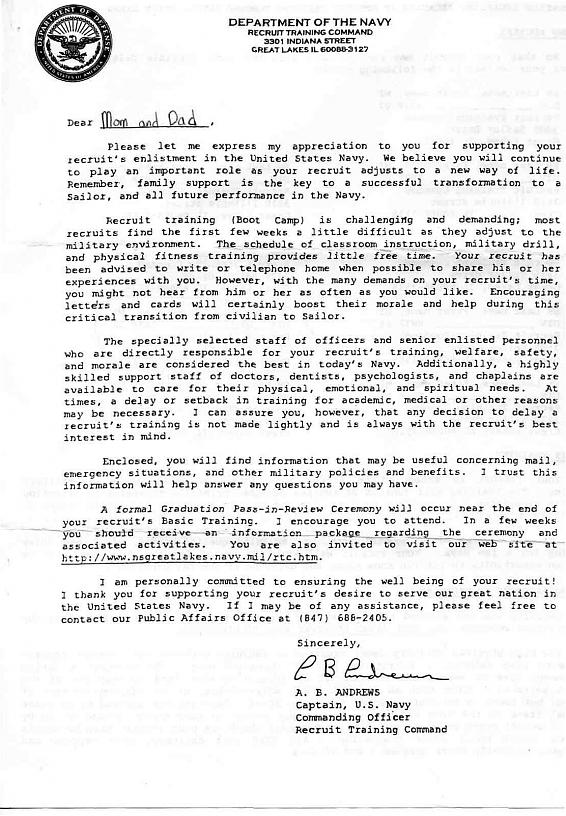 Ahhhhh, I loved getting that form letter. I must have read it a hundred times. I enlarged page 4 so I could read what Brian wrote. Did he ever find any Navy forum people at boot? Loved how he said he had to stay up a lot. Haha! Andrew said he finally got to go to sleep in his.