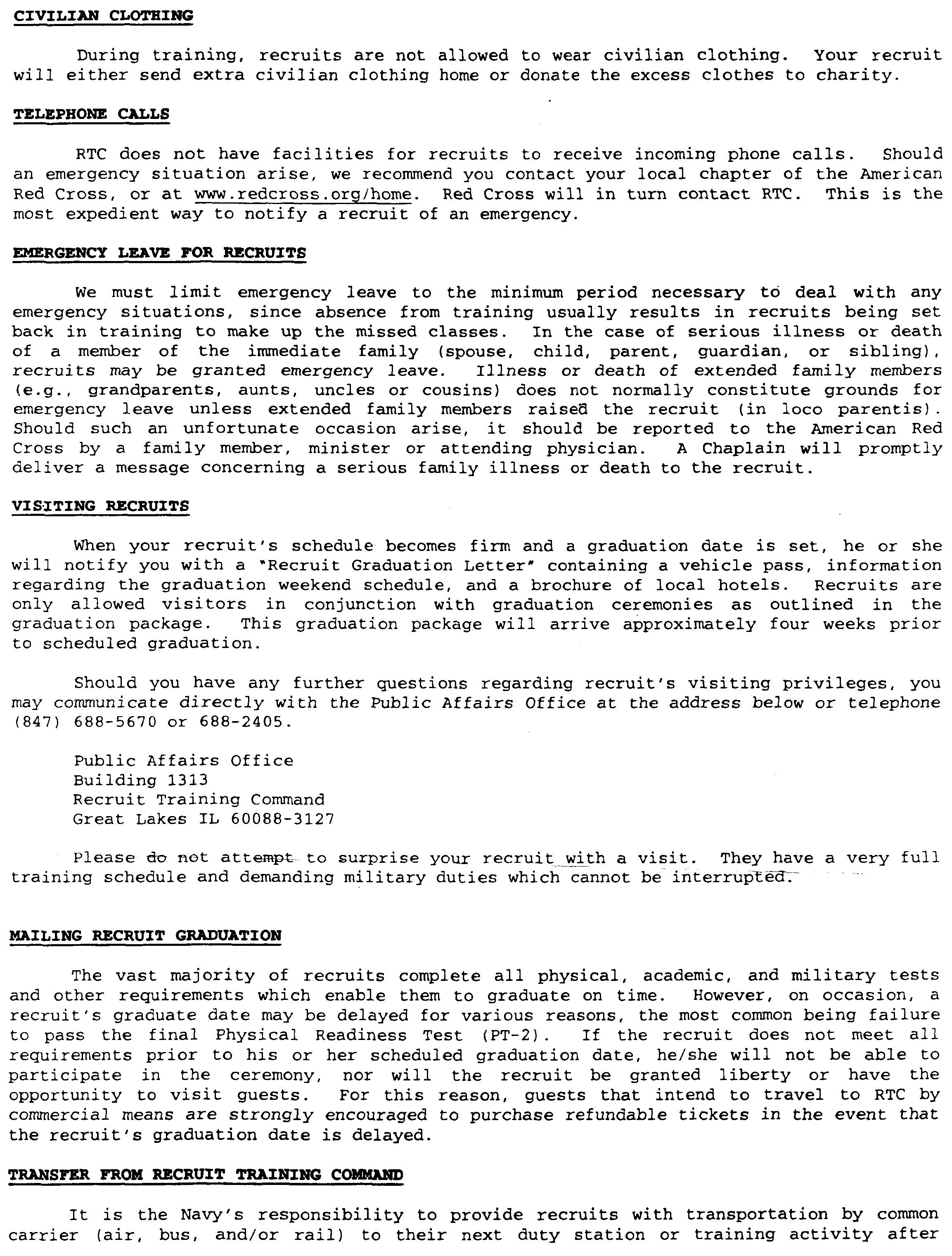 The below is a form letter that is sent from bootcamp... You will notice that your recruit only has enough room for 3 lines on the back page....
